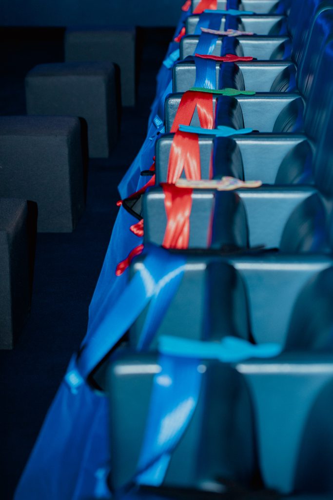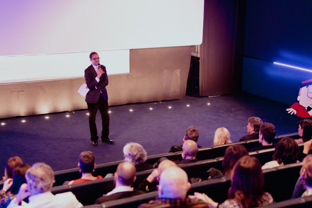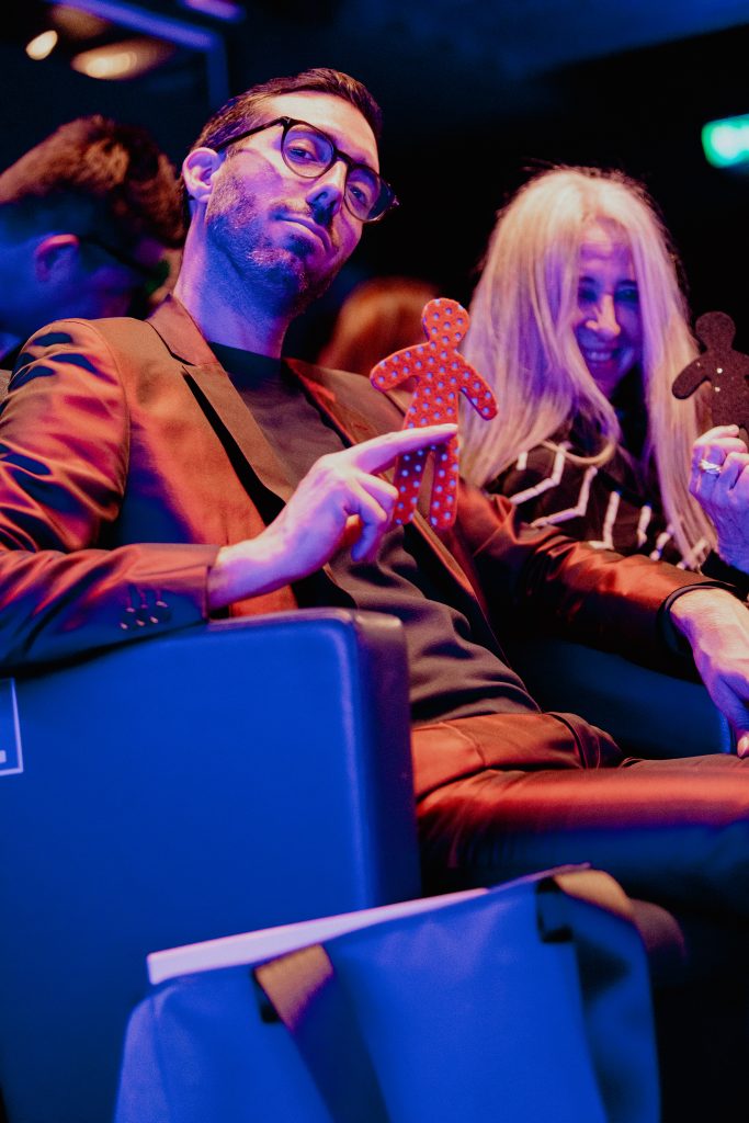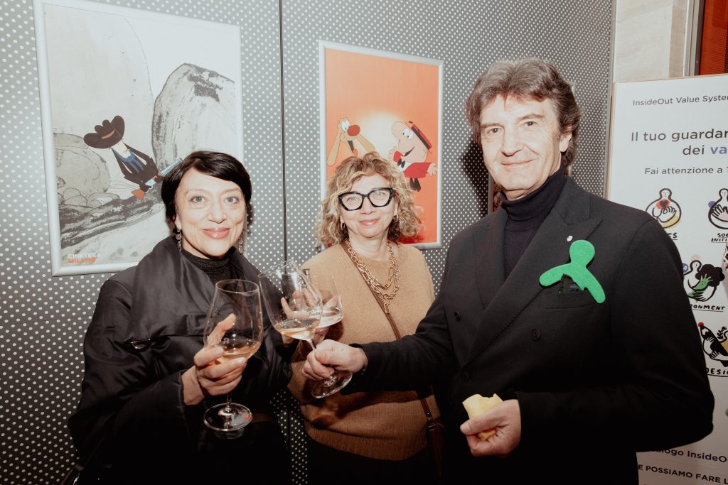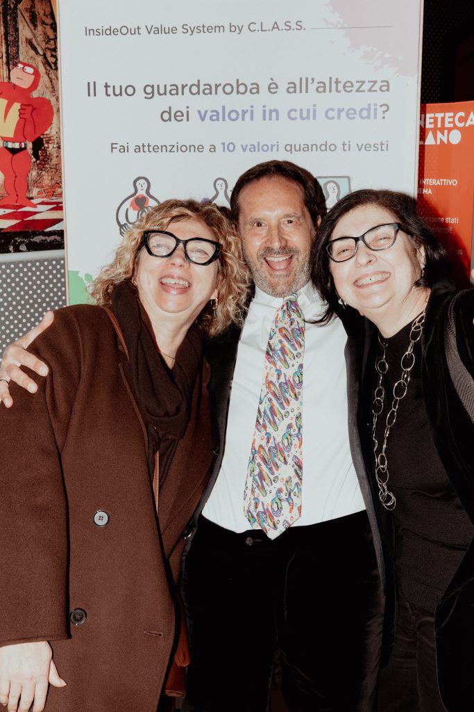 Un Red Carpet di eccezione, quello della serata, realizzato da una vera eccellenza tessile italiana e lombarda: TESSUTI DI SONDRIO. Realtà fondata nel capoluogo valtellinese nel 1895, è oggi un laboratorio internazionale di ricerca tessile e materiali che, pur nello spirito di avanguardia, valorizza il suo Heritage, le sue origini, con grande attenzione alla qualità; caratteristiche queste molto apprezzate dalle Case di Moda e dal Pret-à-Porter internazionali. Infine, RICCARDO RAMI STUDIO, fucina creativa Art, Textile & Industrial Design, Consulting – Perspective – Product che offre alle aziende ricerche mirate e realizza ogni stagione Box di ispirazione e orientamento per gli uffici stile e non solo, ha letteralmente invaso il Museo del Cinema con omini di panno nei colori di ispirazione Pop. Omini che sono il simbolo del “dinamico movimento” dello Studio e che gli ospiti hanno trovato al loro ingresso in Sala di Proiezione “già accomodati” sulle poltrone in attesa del film!