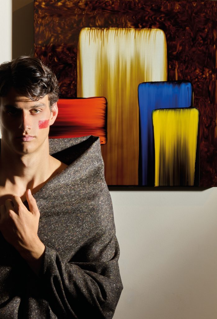 The TSL Gazette ci porta nel mondo di una Galleria d’Arte Contemporanea dove capi, tessuti e tecniche di finissaggio dialogano con le opere esposte, con le quali condividono sfumature cromatiche e concetti, nello spirito il più possibile fedele all’artista-autore in un dialogo reciproco. Quadri resi “viventi” e tangibili dal touch di superfici tridimensionali e strutture che ne estendono il concept originale. Alcuni importanti protagonisti del tessile, delle tecniche di tintura e finissaggio e dell’abbigliamento si presentano qui con i loro prodotti frutto di creatività, passione e ingegno, attenzione alla qualità, senza compromessi.