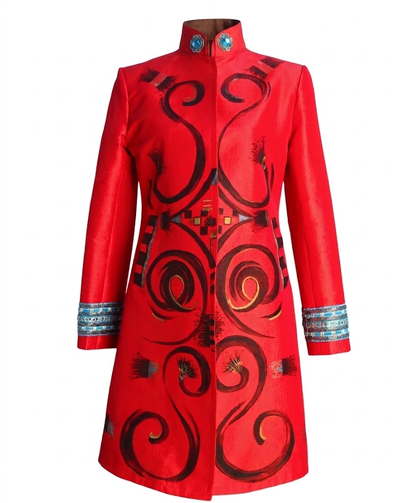 Più che abiti e cappotti si ha la sensazione di indossare un’opera d’arte. E per completare il look anche i mocassini sono decorati con dettagli dipinti a mano. A sottolineare il valore artistico di queste creazioni, una selezione di abiti sarà presentata in una mostra a Milano nel mese di settembre 2026 presso Marco Bertoldi, in occasione della settimana della moda.