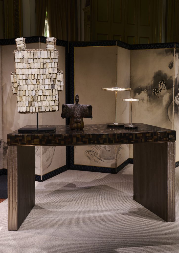 Nelle foto: alcuni focus della collezione Armani Casa “Echi dal Mondo”, allestimento by Federica Bottoli