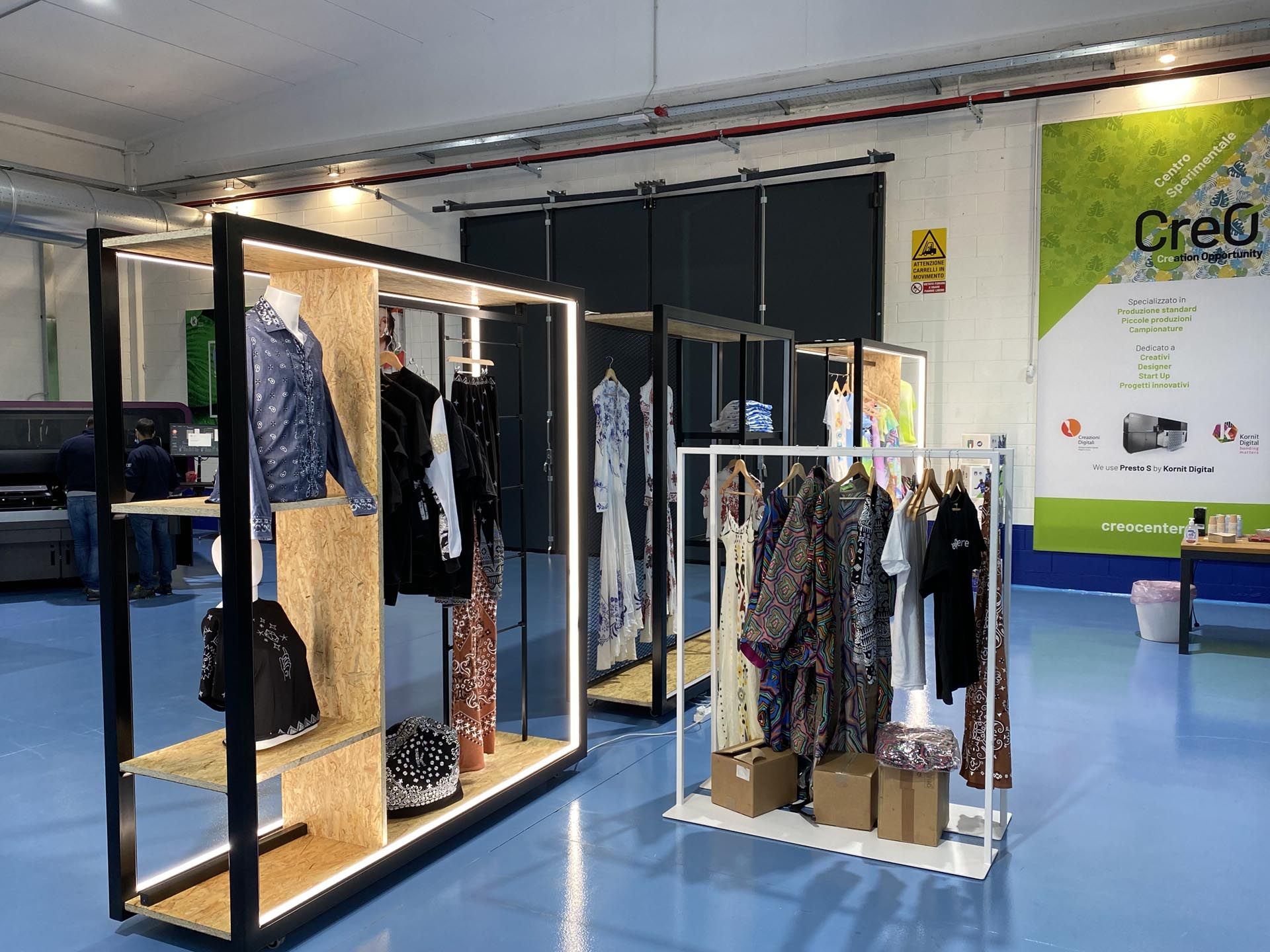 Il giorno successivo, presso il CreŌ Center (in foto sopra), il centro produttivo e sperimentale di Creazioni Digitali, si è potuto visitare il “dietro le quinte” dell’eccellenza del textile digital printing comasco, toccare con mano le potenzialità delle macchine Presto S e Atlas Max di Kornit Digital, e scoprire curiosità, processi e idee che guidano il concetto di sostenibilità delle due aziende partner.