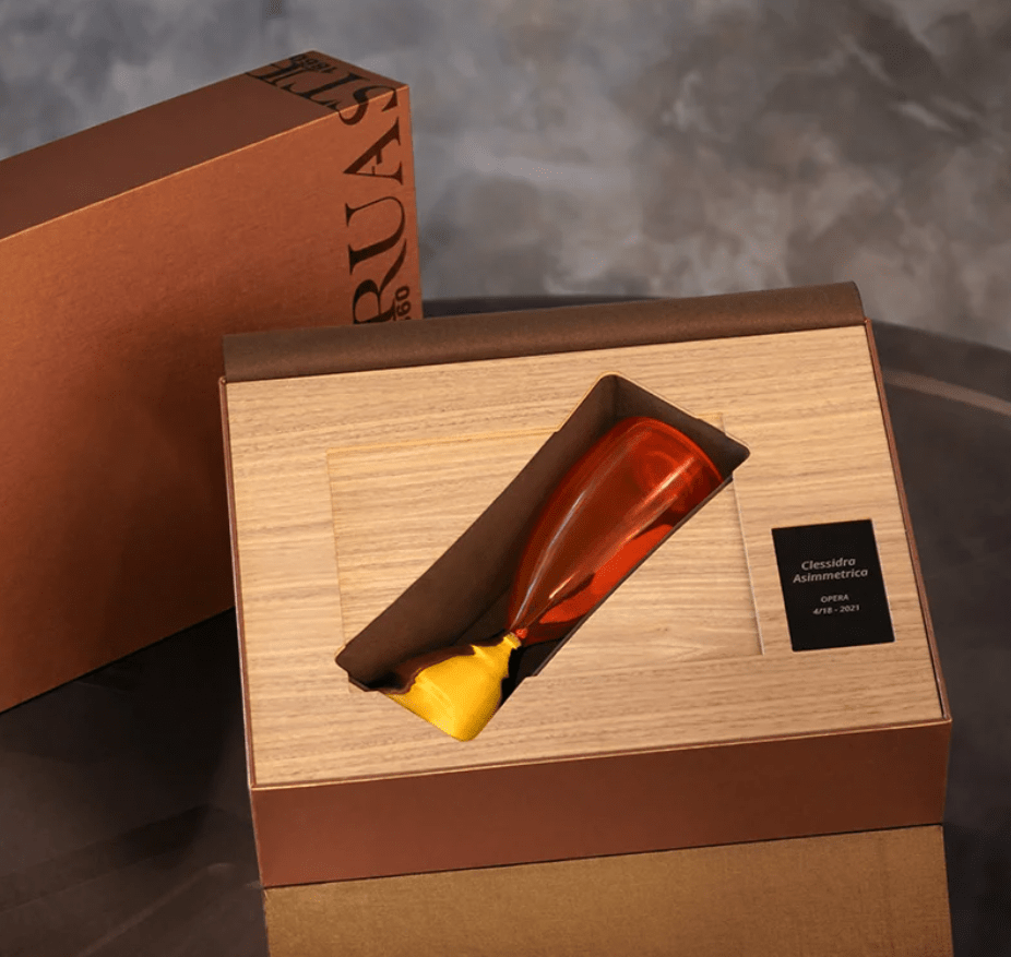 Nel mondo dell’arte vetraria, poche creazioni sono tanto affascinanti e pregiate quanto la Clessidra Asimettirca di Venini, un’opera d’arte che incarna l’essenza stessa del tempo e della bellezza. Presentata in una tiratura limitata di soli diciotto pezzi, questa straordinaria creazione è stata realizzata in esclusiva per Astrua, rendendola un vero e proprio tesoro da custodire. Ispirata alla sabbia che scorre inesorabilmnete nel collo della clessidra, questa produzione vetraria cattura l’essenza fugace del tempo in un equilibrio perfetto tra forme asimmetriche e cromie delicate. I granelli di sabbia, impercettibili nell’insieme ma così presenti, sono stati resi vividi e tangibili attraverso la maestria artigianale dei maestri vetrai di Venini. Nel cuore della fornace Venini, dove il fuoco danza e il vetro fonde in una sinfonia di colori e forme, nulla è lasciato al caso. È qui che la saggezza dei maestri vetrai si unisce all’impiego di tecniche raffinate ed esclusive, tramandate di generazione in generezione.