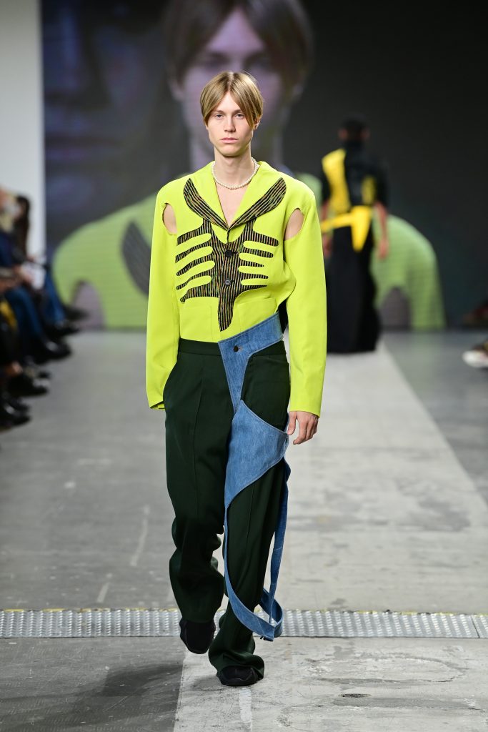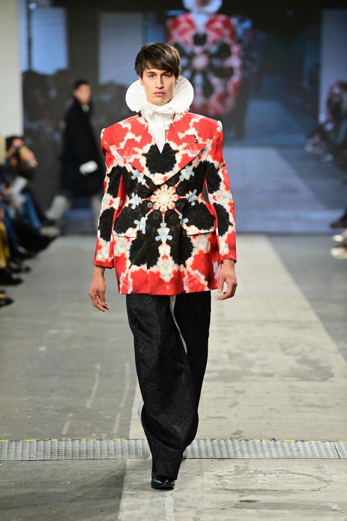 Nelle 8 capsule collection, 4 uomo e 4 donna, si sono alternate linee destrutturate a vestibilità più sinuose e aderenti al corpo. Nello spazio espositivo della manifestazione, la scuola ha presentato i capi dal tema “Sostenibilità ancestrale” di Martina Picotti che ha accostato la cultura amazzonica a quella italiana valorizzando quest’ultima attraverso collaborazioni con aziende come Lanificio F.lli Cerruti, Luxury Jersey, Conceria La Veneta e Friulprint. Una collezione che è simbolo anche di sostenibilità sociale avendo inserito ragazzi diversamente abili nella realizzazione di alcune parti decorative degli outfit realizzati.