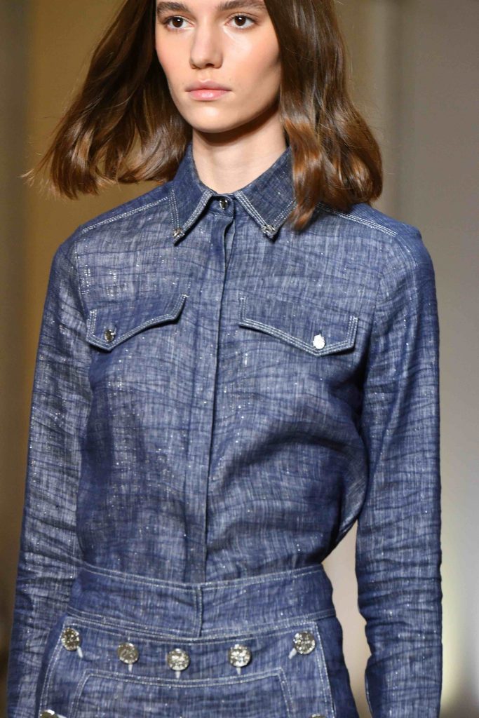 Il luccichio del mare sotto il sole è riprodotto nei capi attraverso i tessuti. Così il trench in lino effetto denim è composto da due tipologie di fibre: un indaco blu e un filo bianco che intrecciato con un filo lurex regala un effetto lucente; oppure il trench rosso utilizza un lino come base che viene poi stampato e spalmato per creare un effetto di lucentezza che riconduce ad un immaginario di vetro/cristallo.