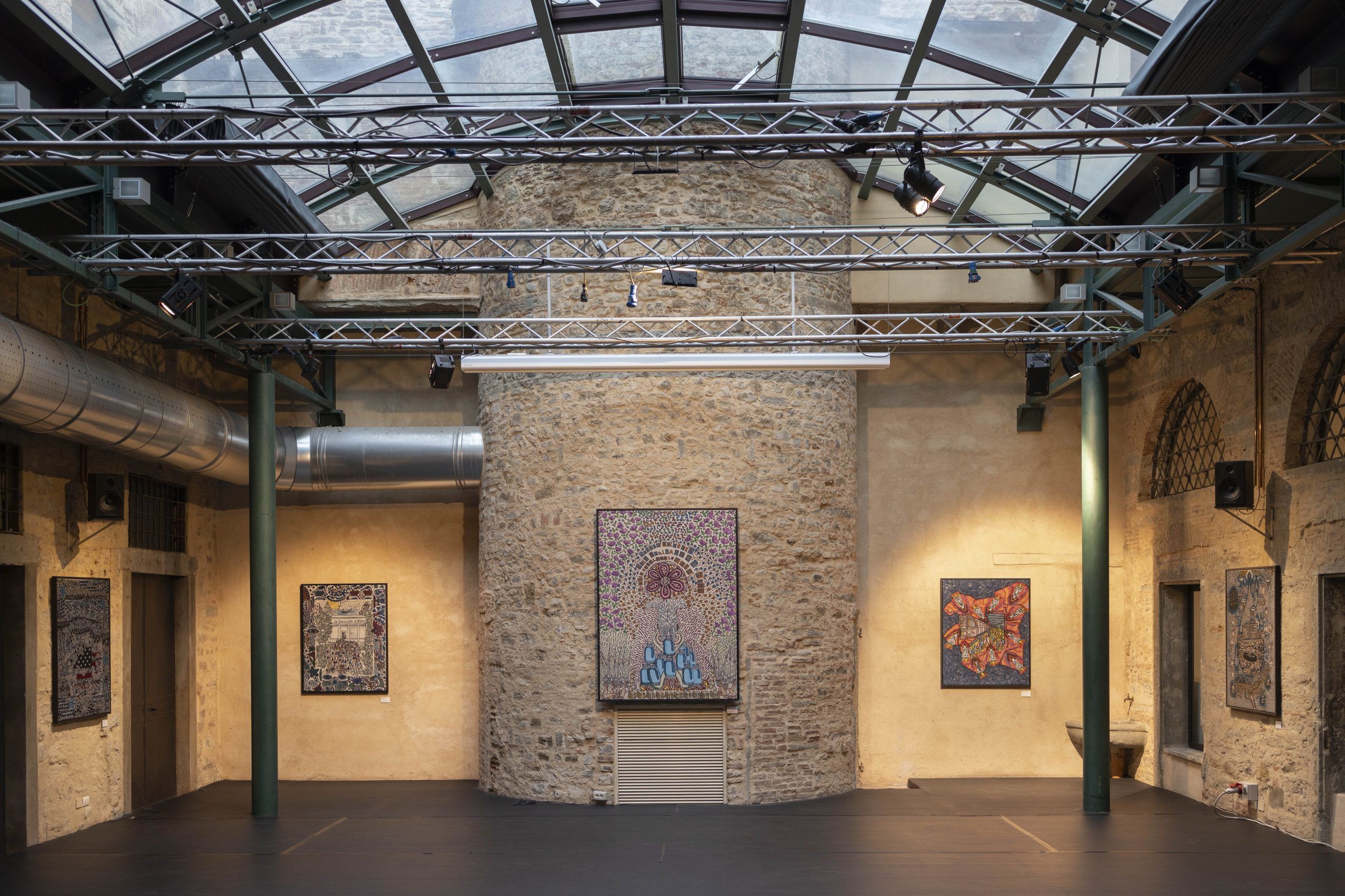 Tre nuovi arazzi realizzati a telaio jacquard dalla manifattura Bonotto per la mostra esposta al MAD Murate Art District.