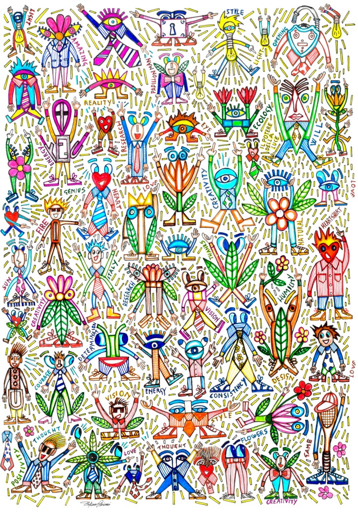 Nell’ambito della mostra “Drawing Everyday. Diario visivo di Stefano Chiassai”, esposta al MAD Murate Art District, giovedì 5 ottobre, presso la sala Anna Banti, verranno presentati tre nuovi arazzi appositamente realizzati a telaio jacquard dalla pregiata manifattura Bonotto su disegno di Stefano Chiassai. Per l’occasione è previsto un talk “Stefano Chiassai. Tapestries”, inserito nel palinsesto degli eventi della Florence Art Week, dedicato al design e allatecnica dell’arazzo con gli interventi di Stefano Chiassai, Perla Gianni (ADI) e Giovanni Bonotto (Manifattura Bonotto). I tre arazzi rappresentano diversi soggetti: la solidarietà con i drammi delle donne iraniane, rappresentate da Chiassai in manifestazione per i loro diritti, in un contrastato bianco e nero; il dramma della guerra in Ucraina, con i bombardamenti che da mesi affliggono la popolazione civile, in costante richiesta di aiuto; infine il vitalismo personale di Stefano Chiassai, che reagisce ai drammi della storia con una esplosione di energia, invitando il pubblico a non arrendersi e a mantenere uno sguardo da bambini. Queste opere di imponenti dimensioni oltre 2 metri e mezzo di altezza fanno parte e dialogano con la selezione di disegni inediti realizzati da Chiassai tra il 2022 e il 2023, esposti nella mostra “Drawing Everyday. Diario visivo di Stefano Chiassai”, curata da Valentina Gensini e organizzata da MUS.E in collaborazione con ADI Toscana, ospitata al MAD fino al 12 novembre 2023 su un progetto dell’artistaspecificamente pensato per le sale Laura Orvieto, Ketty La Rocca e il Semiottagono del Complesso delle Murate. Disegni, tessuti, pregiati arazzi e oggetti di design mettono in scena parole, geometrie, pattern, figure, riattivando una memoria collettiva e condivisa che racchiude i principali avvenimenti dal 2021 al 2023 attraverso un progetto site specific di materiali inediti. Una suggestiva fusione di linguaggi rispondente all’eclettica creatività di Chiassai, che concretizza in un trionfo cromatico il dialogo tra il passato storico della città di Firenze, intensamente legato alla progettazione artistica di arazzi, e l’arte contemporanea. Al centro del lavoro di Stefano Chiassai, la pratica quotidiana del disegno a pennarello che non ammette errori o revisioni, una disciplina sistematica e un metodo di rielaborazione delle vicende globali, così come arrivano sulle nostre scrivanie e nelle nostre case attraverso la scrittura giornalistica dei quotidiani. Chiassai rielabora tutto con toni ironici dal sapore popolare, che traducono la percezione collettiva della storia presente. Le vicende più crude legate alla politica internazionale, alla guerra, a drammatiche urgenze ambientali o climatiche, lasciano talvolta spazio alla cronaca più alta (l’arresto di Matteo Messina Denaro così come la morte di Papa Benedetto XVI), fino a vicende legate a tutta la cittadinanza (l’arrivo della Primavera, le vittorie calcistiche) e personali, come il disegno dedicato all’amico Giovanni Bonotto. Scritti e parole si insinuano nel testo visivo come a ricalcare il vocabolario della condivisione collettiva dei grandi avvenimenti: parole sensazionalistiche, emotive, grandiose che traducono la fibrillazione della notizia appena uscita, così come le chiacchiere da bar alla lettura dei quotidiani.