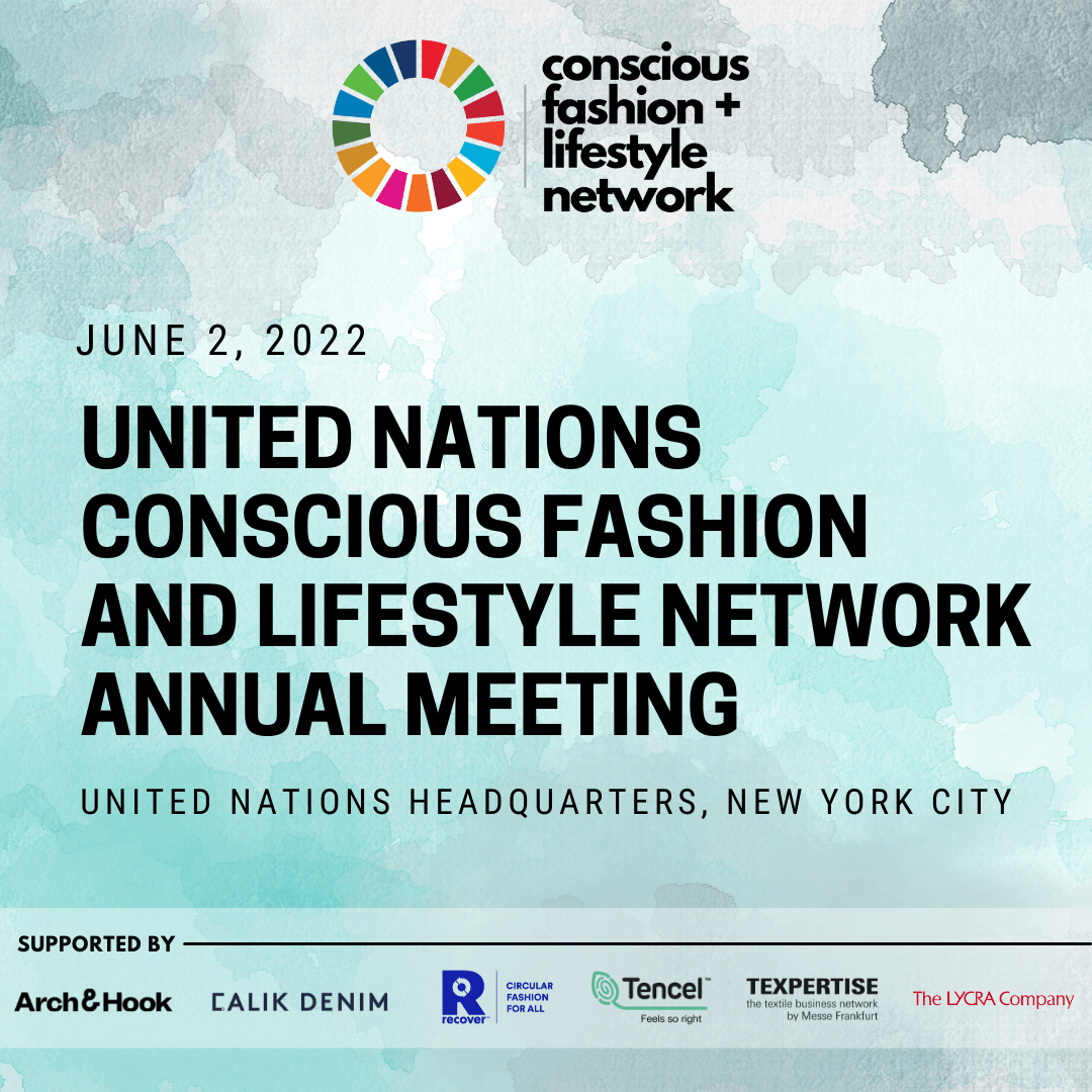 The Conscious Fashion and Lifestyle Network è una piattaforma online ospitata dalle Nazioni Unite per gli operatori del settore, i media, i governi e gli enti del sistema ONU. La rete mostra e consente collaborazioni che accelerano l’attuazione degli Obiettivi di Sviluppo Sostenibile. Il “Conscious Fashion and Lifestyle Network” delle Nazioni Unite è un’iniziativa congiunta dell’Ufficio delle Nazioni Unite per i partenariati della Divisione per gli Obiettivi di Sviluppo Sostenibile – Dipartimento delle Nazioni Unite per gli Affari Economici e Sociali e del Fashion Impact Fund. Le principali entità della rete convocano eventi periodici in linea con le principali riunioni del calendario delle Nazioni Unite e pubblicano relazioni sui risultati della rete.