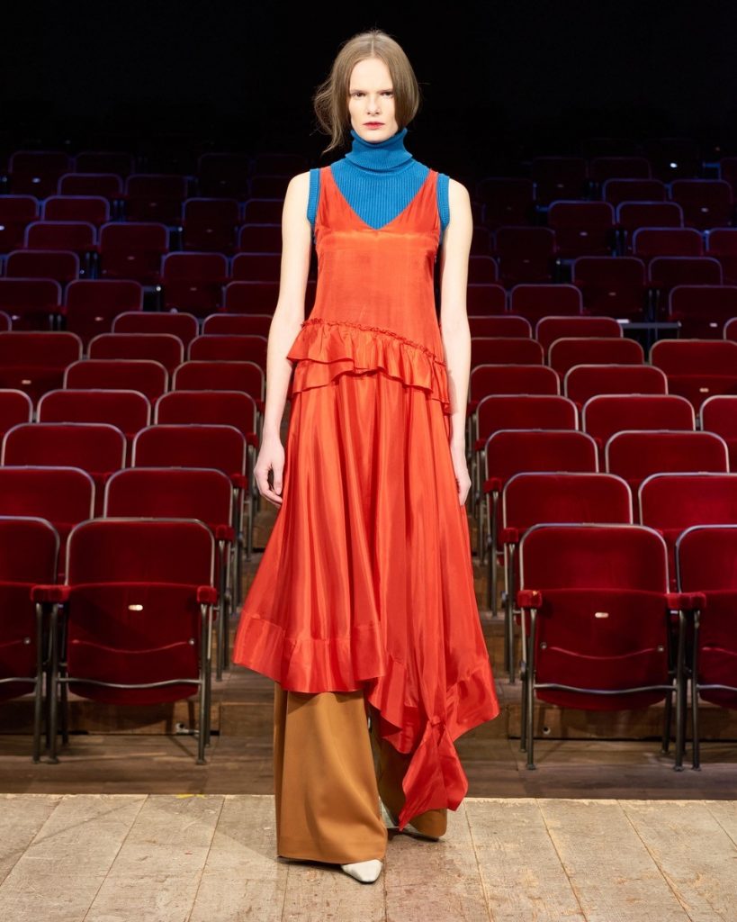 Abito della collezione ai 21/22 di Gilberto Calzolari realizzato in Bemberg certificato GRS.