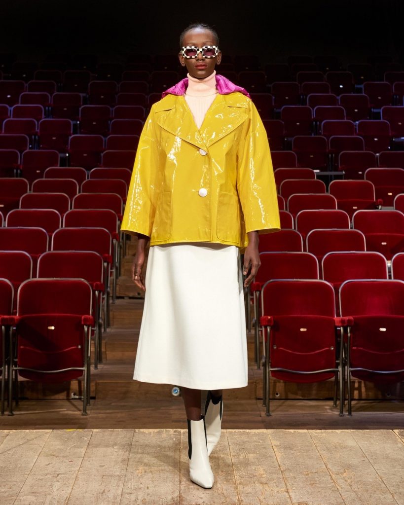 Giacca della collezione ai 21/22 di Gilberto Calzolari in vinile upcycled certificato ReLiveTex