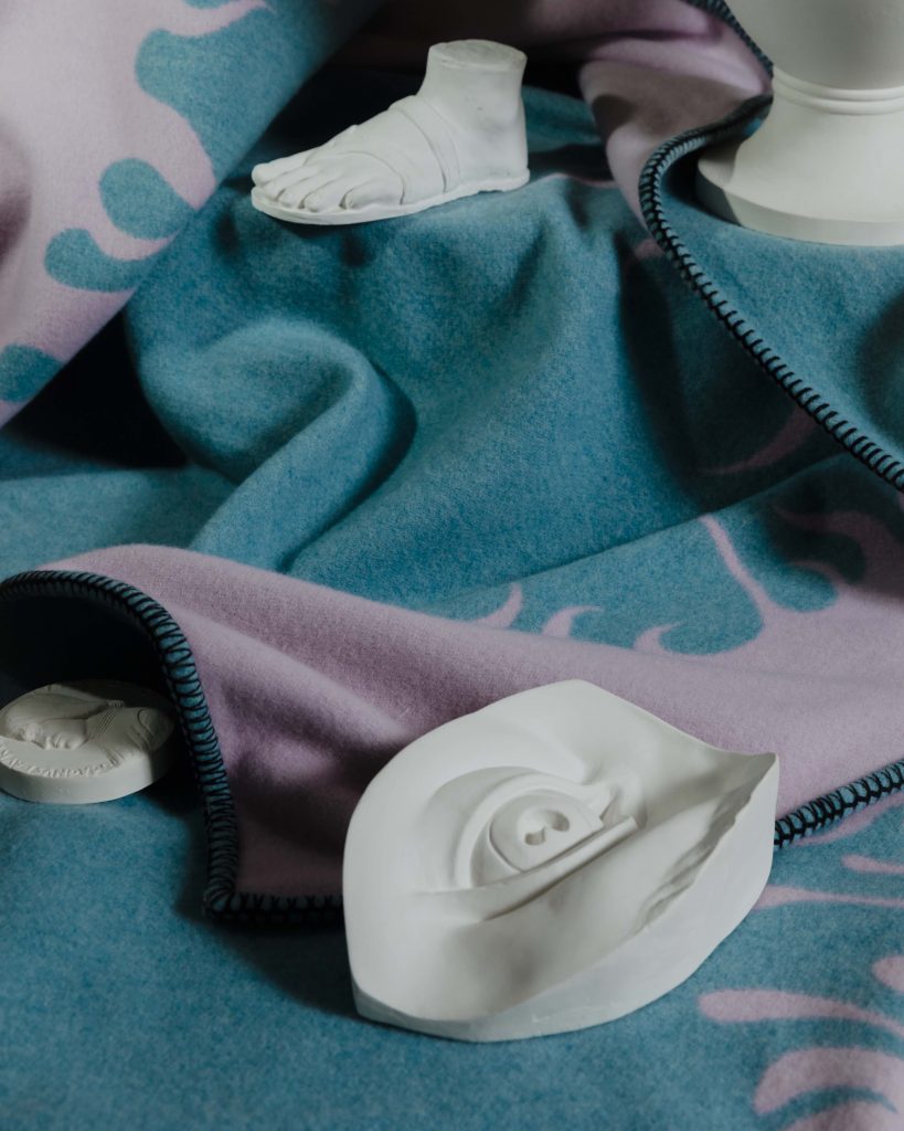 Questa linea, lanciata lo scorso anno con il Plaid Triennale, si arricchisce ora di un ulteriore pattern che rende omaggio e riedita un disegno presentato alla VI Triennale di Milano: una composizione di segni armonici derivati dalle forme presenti in natura e due campiture di colore, che si inserisce tra le ricerche estetiche dell’Organic design nel campo del progetto tessile.