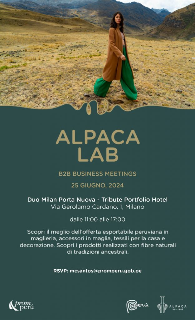 Promperù Italia, insieme agli uffici regionali di Promperù, per il secondo anno consecutivo, realizzerà una missione tecnologico-commerciale a Milano, capitale della Moda e del trade tessile, con l’obiettivo di formare le Piccole Medie Imprese delle regioni di Cusco, Arequipa e Puno, per sviluppare una strategia competitiva e potenziare l’offerta esportabile di manufatti e capi di alta qualità e artigianali. L’appuntamento è per il 25 giugno ed è rivolto al segmento alto e lusso, boutique e fashion designer, produttori e showroom moda che desiderino trovare fornitori e avere l’opportunità di conoscere di persona 11 selezionate aziende peruviane: