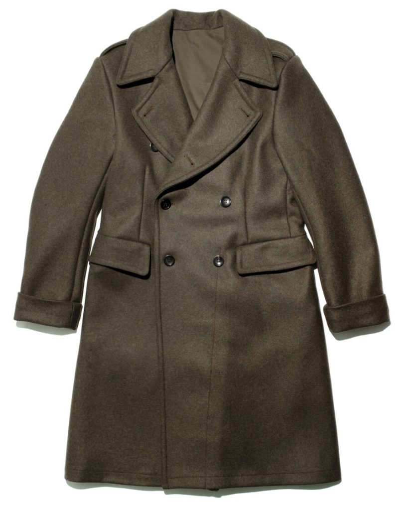 Il Balbo coat (in foto) è un modello a doppiopetto con martingala, fodera in gabardine di cotone con tasca militare interna.