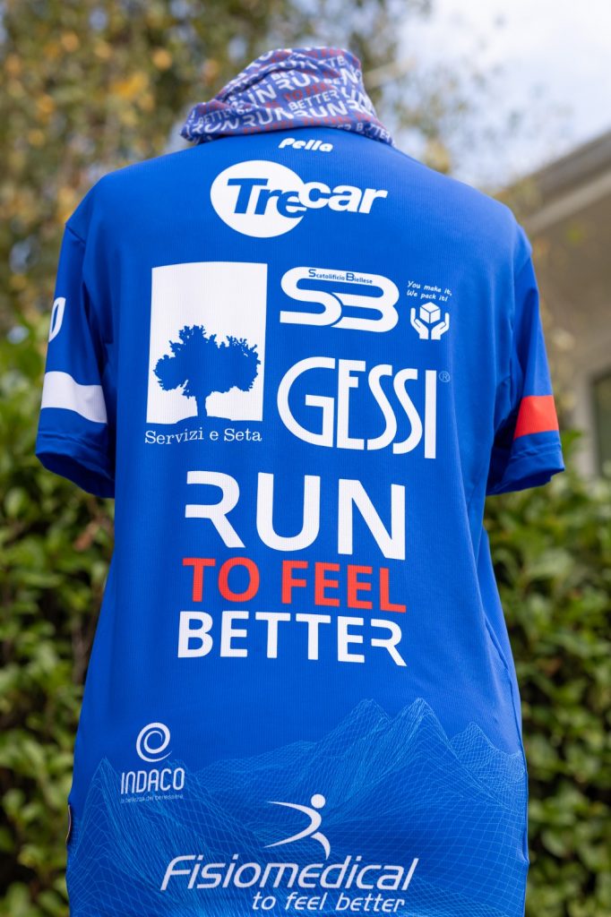 in foto: La maglia tecnica RUN TO FEEL BETTER con la sponsorizzazione di SERVIZI e SETA