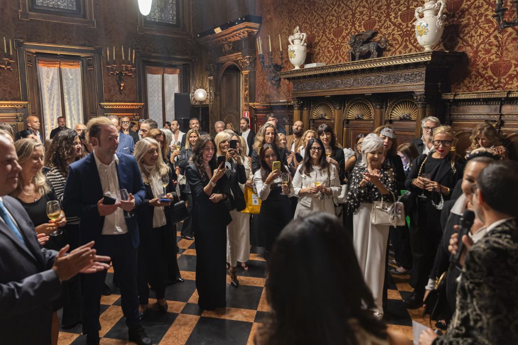 Da sinistra in foto: Junshu Furusawa, CEO di Asahi Kasei Fibers Italia ed Ettore Pellegrini; Ingresso del Museo Bagatti Valsecchi; Ambasciatore del Perù in Italia, SE Manuel Cacho-Sousa Velasquez con la consorte, alla sua sinistra SE la Console Generale del Perù a Milano Ana Teresa Lecaros TerryFoto al centro: scalone d’onore del Museo Bagatti Valsecchi; i capi in crochet realizzati dalle donne artigiane pugliesi Da sinistra in foto: Caroline BouchyDubini, Vicedirettrice Generale Indosuez Wealth Management Italia; la performance dell’artista Luciana Ame; l’ambasciatore del Perù in Italia SE Manuel Cacho-Sousa VelasquezDa sinistra in foto:Marco Poli e Silvia Messori ; Michela Delle Donne, Eurojersey; Nathalie Galup, Ufficio Stampa Italia Première Vision e Giacomo Bottaro, Country Manager Italia GL eventsDa sinistra in foto: Gianluca Mirante, direttore HKTDC e Marco Poli; Melissa Cabrera Santos di Prom Perù Italia e Joan Manuel Barrena Chavez, direttore di Prom Perù Italia; la Presidentessa Camera Show-room Milano Gigliola Maule e Marco PoliDa sinistra in foto: Lo stilista Pietro Paradiso e Belinda Mauceri; Paolo Ferla di Lanificio Egidio Ferla; Diletta Di Benedetto, Cristiana Cariaggi e Gianluca Miliani di CariaggiDa sinistra in foto Nathalie Galup e Giusy Bettoni; Mauro Balletti; Sara Sammarco e Matteo Chincarini Da sinistra in foto: Marco Poli, Alessandra Moretti e Sara Temporin di Moncler; Un dettaglio delle grucce Alvah Group; Maria Nigro e Alicia Moralejo Villegas di Indosuez Wealth Management ItaliaDa sinistra in foto: Luana e Paolo Uliassi di Achille Pinto; Pietro Paradiso, Tatiana Vishnyakova, Laura Pagani Cesa, Magda Borgo, Cesarina Ferruzzi; Briony Schofield, Michela delle Donne, Paola BosettiDa sinistra in foto: Junshu Furusawa, Ettore Pellegrini, Andrea Ravazzolo, Chiara Biavaschi Di Brunello spa; un momento del discorso di benvenuto; particolare delle bottiglie Acqua Lauretana disegnate da Pininfarina